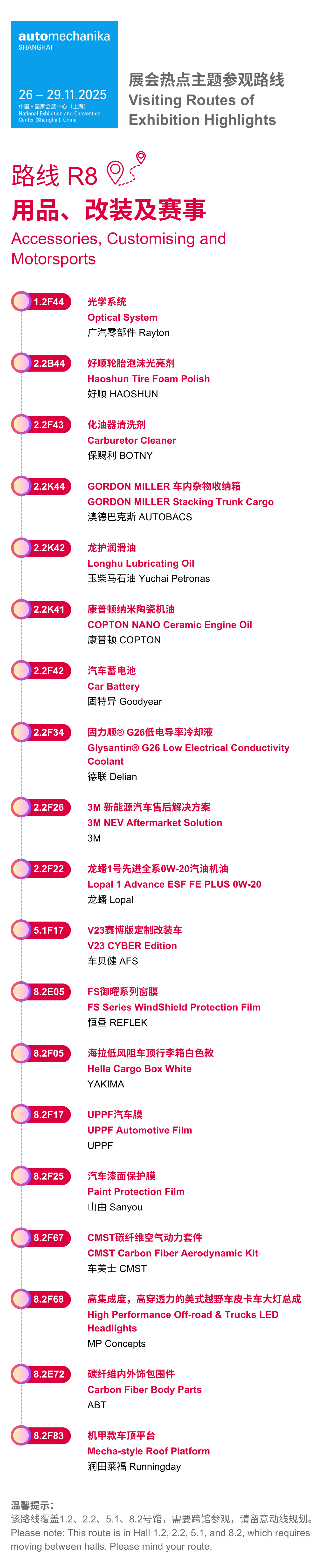 Visitors can easily explore innovation upgrades through specially curated themed visiting routes that highlight industry trends and facilitate effective networking opportunities. Overall, eight routes will assist visitors in discovering the latest advancements in powertrain, new energy, connectivity, digitalisation, repair, customising, accessories, tyres and wheels and more